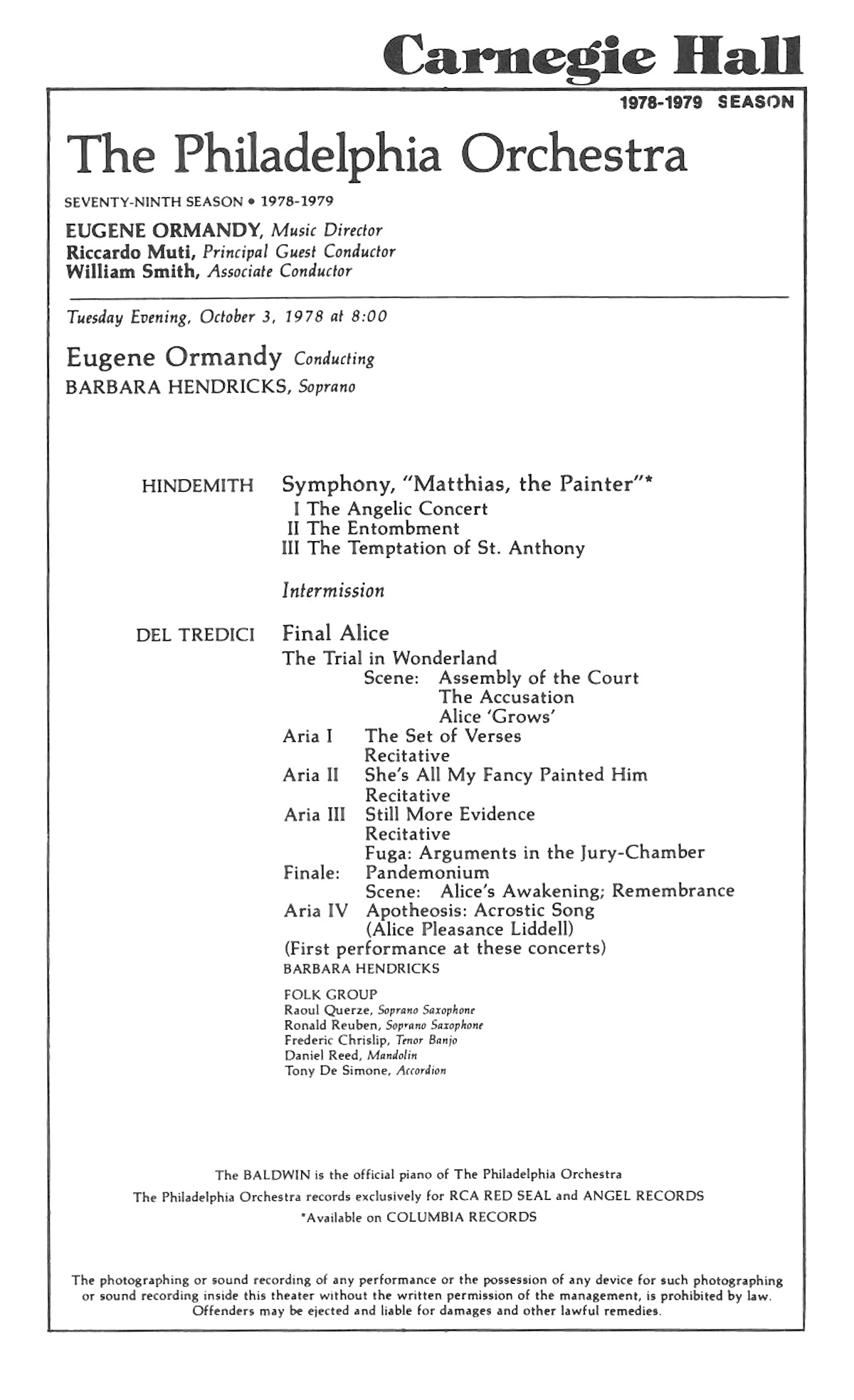 Del Tredici, Final Alice, The Phildelphia Orchestra, October 3, 1978
